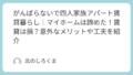 しろくまラボ X Facebook はてブ LINE コピー 2025.11.01この記事は約1分で読めます。ブログへようこそ。「がんばらない」をモットーに、日常生活のリアルな体験談を記事にしています。【新着記事】 ロピアのオリーブオイルを試してみた感想 2025.11.24 がんばらないで四人家族アパート賃貸暮らし│マイホームは諦めた!賃貸は損?意外なメリットや工夫を紹介 2025.11.072025.11.09 (5/5)無事に生まれてきてくれてありがとう:NT肥厚と向き合った私たちの決断 2025.11.052025.11.09 (4/5) 出生前診断の流産リスク│コンバインド検査の結 2025.11.042025.11.09 (3/5)NT計測国際資格(FMF)を持つ専門医による診断:むくみは消えた?出生前診断の提案 2025.11.032025.11.09