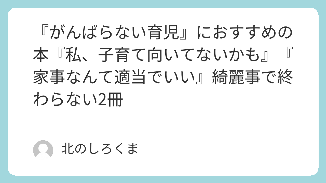 「家事も子育ても完璧にしないと…」という呪縛から私を解放してくれた本です。