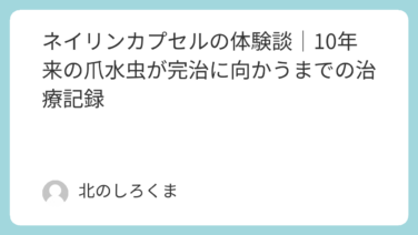 がんばらない家事育児ネイリンカプセルの体験談|10年来の爪水虫が完治に向かうまでの治療記録 今日は、10年来の爪水虫に悩む父が、新薬「ネイリンカプセル」を試した体験談をお伝えします。長年悩んでいた水虫治療の革命!新薬ネイリンカプセル10年前から父は爪水虫を患っていました。皮膚科に通ってはいましたが、処方された塗り薬は痒みが強い... 2024.01.09 2025.11.09がんばらない家事育児