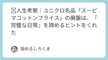 暮らしの化学実験人生考察|ユニクロ名品「スーピマコットンフライス」の廃盤は、『完璧な日常』を諦めるヒントをくれた こんにちは、しろくまパパです。先日、ユニクロの「スーピマコットンフライスシャツ」が廃盤になったというニュースを聞きました。私もその愛用者の一人で、この知らせを聞いた時は大きなショックを受けました。100%天然素材の優しい肌触り。着ている... 2024.10.19 2025.09.20暮らしの化学実験