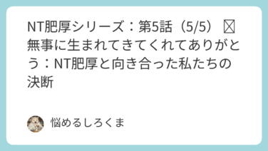 暮らしの化学実験NT肥厚シリーズ:第5話(5/5) 無事に生まれてきてくれてありがとう:NT肥厚と向き合った私たちの決断 こんにちは、しろくまママです。これまでの記事で、妊娠初期にNT肥厚を指摘され、どん底に突き落とされた私たち夫婦の葛藤についてお話ししました。この最終話では、私たちがどのように不安を乗り越え、無事に出産に至ったのか、そしてその後の我が子の成... 2025.07.06 2025.09.20暮らしの化学実験