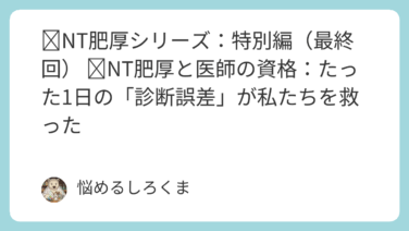 暮らしの化学実験NT肥厚シリーズ:特別編(最終回) NT肥厚と医師の資格:たった1日の「診断誤差」が私たちを救った こんにちは、しろくまママです。これまでのシリーズでは、私たちがNT肥厚を指摘されてから、診断、そして出産に至るまでの感情的な物語をお話ししました。しかし、私たちの経験には、もう一つ、今悩んでいるあなたにどうしても伝えたい**「重要な真実」... 2025.07.06 2025.09.20暮らしの化学実験