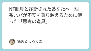 暮らしの化学実験NT肥厚と診断されたあなたへ:理系パパが不安を乗り越えるために使った「思考の道具」 こんにちは、理系パパです。妻の「しろくまママ」が、私たち夫婦のNT肥厚に関する一連の出来事をブログで公開しました。これは、感情に揺さぶられ、多くの情報に翻弄された、私たち夫婦の**『生々しい記録』**です。まだ読んでいない方は、先にこちら... 2025.07.06 2025.09.20暮らしの化学実験