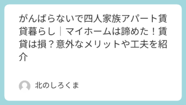 がんばらないで四人家族アパート賃貸暮らし│マイホームは諦めた!賃貸は損?意外なメリットや工夫を紹介