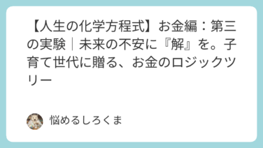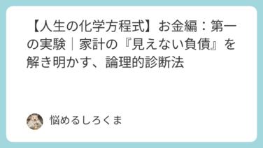 キャリア、お金、人間関係、そして日々の選択。私たちの人生は、無数の選択と決断で成り立っています。このカテゴリーでは、漠然とした「人生の悩み」を、理系パパならではの視点で、方程式のように解き明かしていきます。