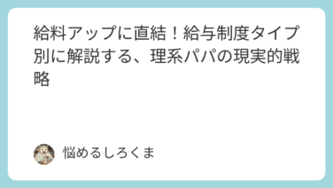 人生の化学方程式給料アップに直結!給与制度タイプ別に解説する、理系パパの現実的戦略 1. 導入:なぜ給料アップは「論理的」に考える必要があるのか「頑張っているのに、なぜか給料に反映されない…」「どうすれば給料を上げられるのか、具体的に分からない…」そう悩む人は多いのではないでしょうか。給料アップは、感情的な訴えや根... 2025.09.02 2025.09.20人生の化学方程式