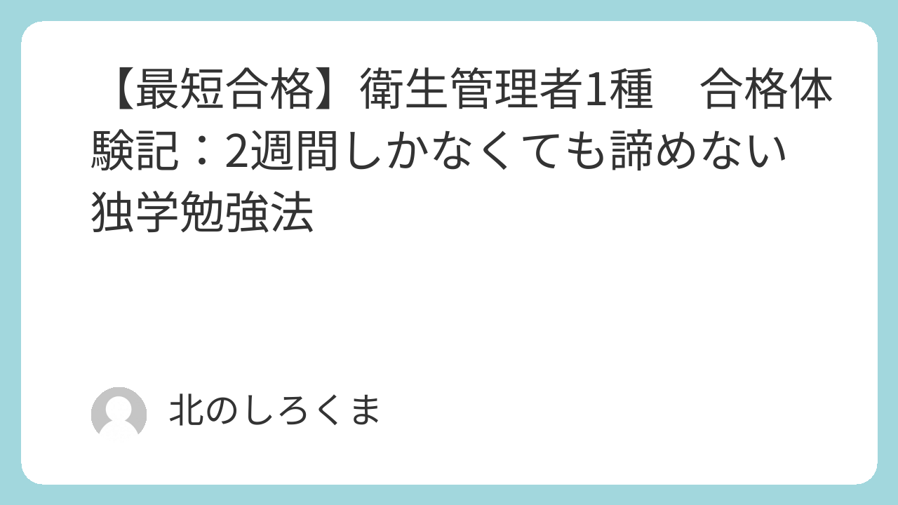 「衛生管理者1種」を受験し、2週間で働きながら、毎日1時間くらい勉強して、合格しました。