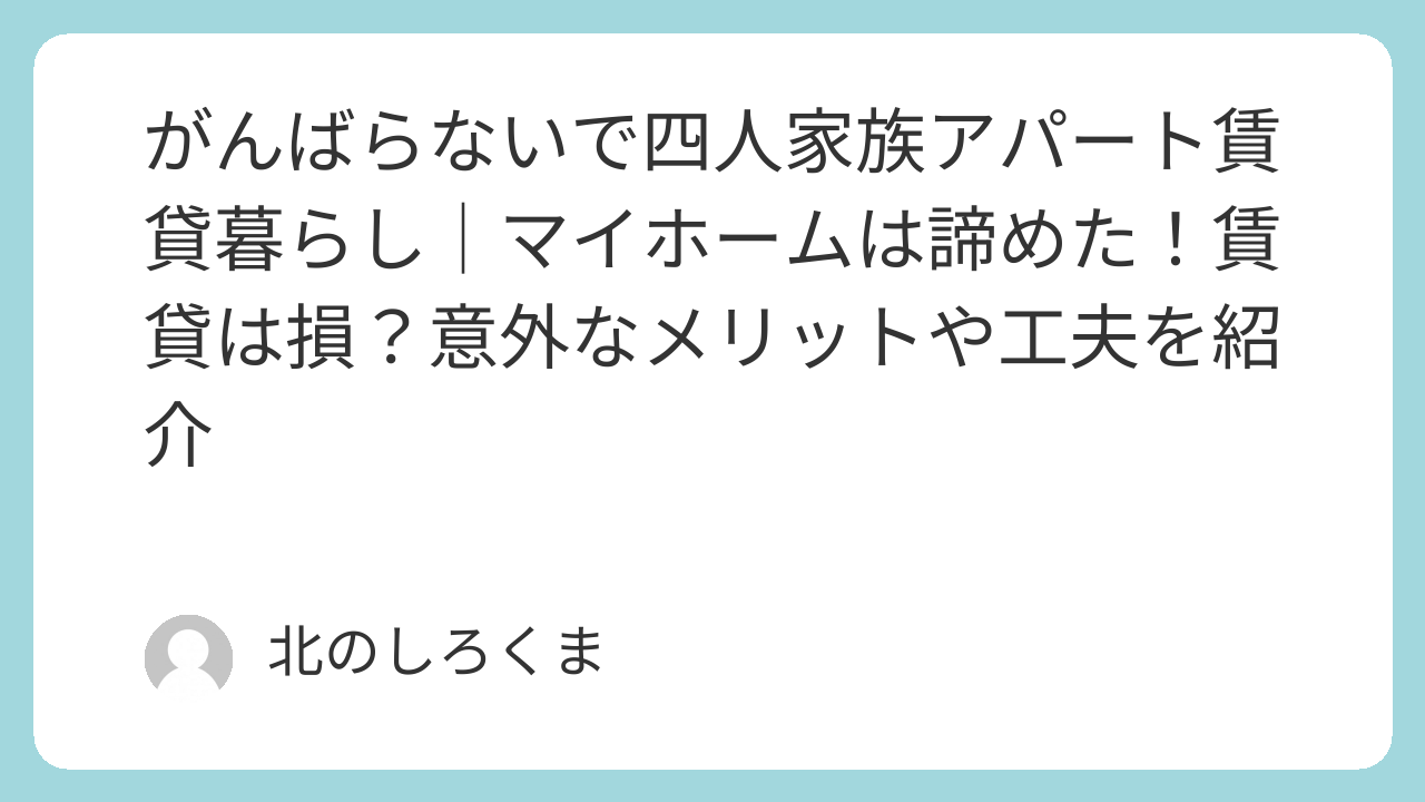 マンションはコスパが悪い感じがして、アパートに住んでいます。