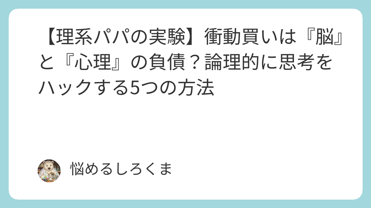 この記事では、衝動買いを「非論理的な問題」と捉え、その原因を論理的に分解し、思考そのものをハックするための5つの方法を解説します。