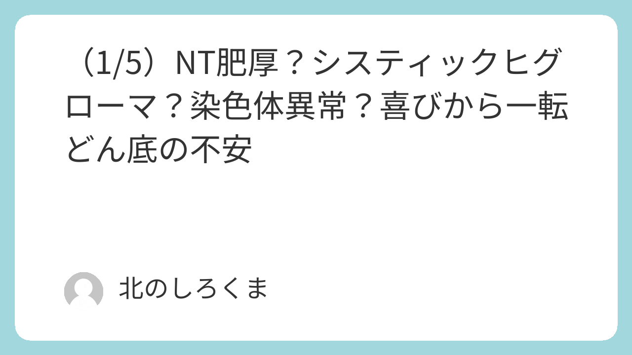 こんにちは、しろくまママです。前回の記事では、赤ちゃんに首の後ろのむくみ(NT肥厚)を指摘されてからの、長く辛い一週間についてお話ししました。再診までの間、私たちは終わりのない情報検索に翻弄され、不安は募るばかりでした。NT計測の難しさ...