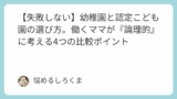 ▶︎ [【失敗しない】幼稚園と認定こども園の選び方。働くママが『論理的』に考える4つの比較ポイント]