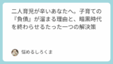 ▶︎ [二人育児が辛いあなたへ。子育ての『負債』が溜まる理由と、暗黒時代を終わらせるたった一つの解決策]