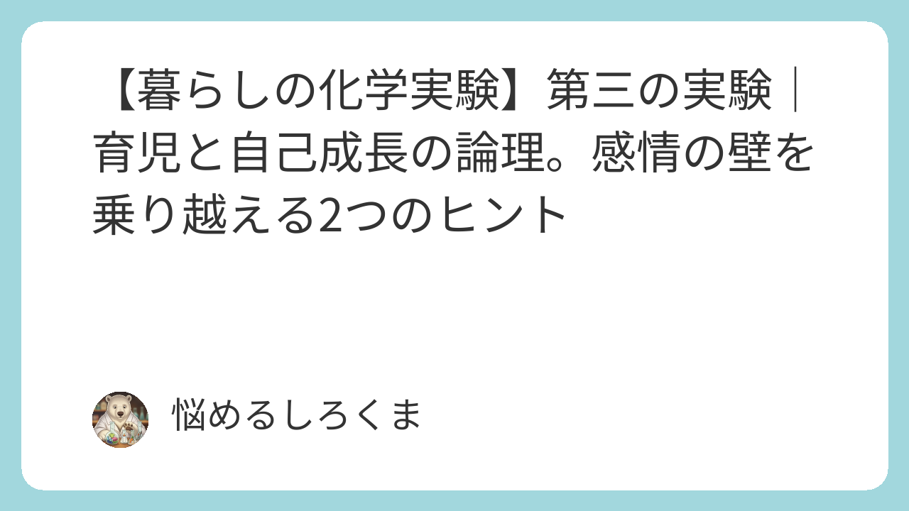 ▶︎ [【暮らしの化学実験】第三の実験│育児と自己成長の論理。感情の壁を乗り越える2つのヒント]:この記事