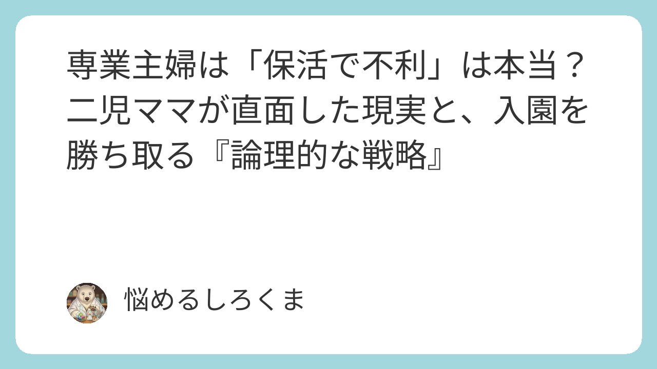 あなたの保活も、**『感情』ではなく『論理』**で動くことで、成功への道筋が見えてくるはずです。
