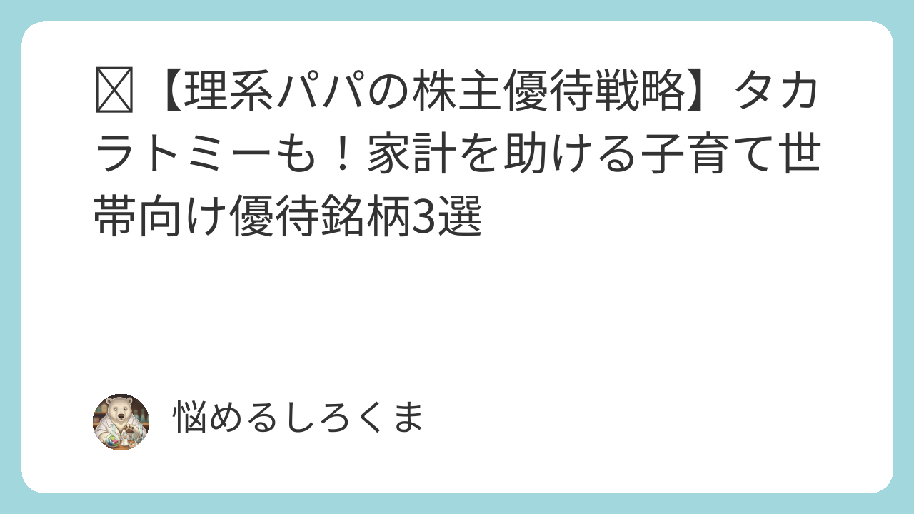 株主優待は、単なる「お得な買い物」ではありません。「子供と笑顔で過ごす時間を増やし、同時に資産形成も進めるための論理的な戦略」です。