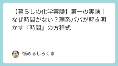 暮らしの化学実験【暮らしの化学実験】第一の実験│なぜ時間がない?理系パパが解き明かす『時間』の方程式 こんにちは、理系パパです。「気づけばいつも時間に追われている」「仕事、家事、子育て…毎日忙しいのに、何も成し遂げられていない気がする」もし、その悩みが「子育て中のイライラや自己嫌悪」にあるなら、**『二人育児が辛いあなたへ。子育ての『... 2025.09.01 2025.09.23暮らしの化学実験