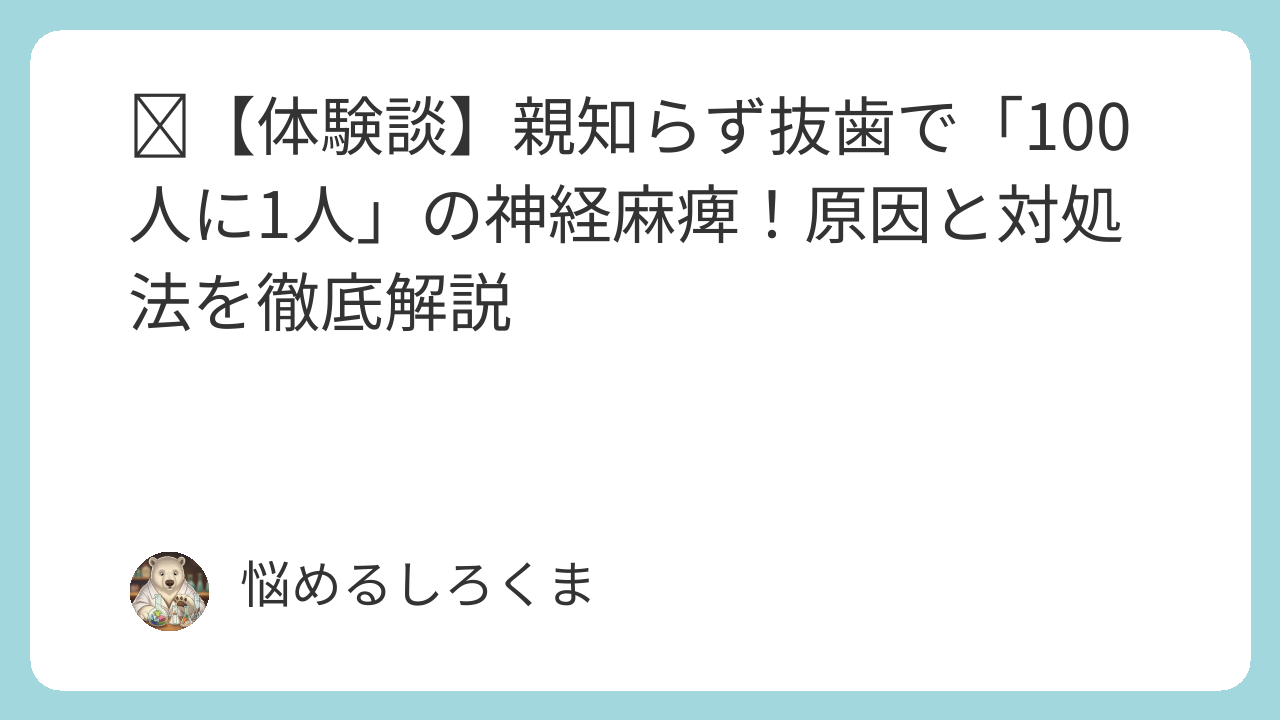 後から医師に説明されたのは、下歯槽神経に触れたことで痛みがあったということ。麻酔が効いていないのではなく、神経そのものに物理的な刺激が加わったためだと考えられます。看護師として、これは麻酔が効きづらい神経があることや、無理な抜歯が神経損傷につながるという、医学的な知見と一致するものでした。