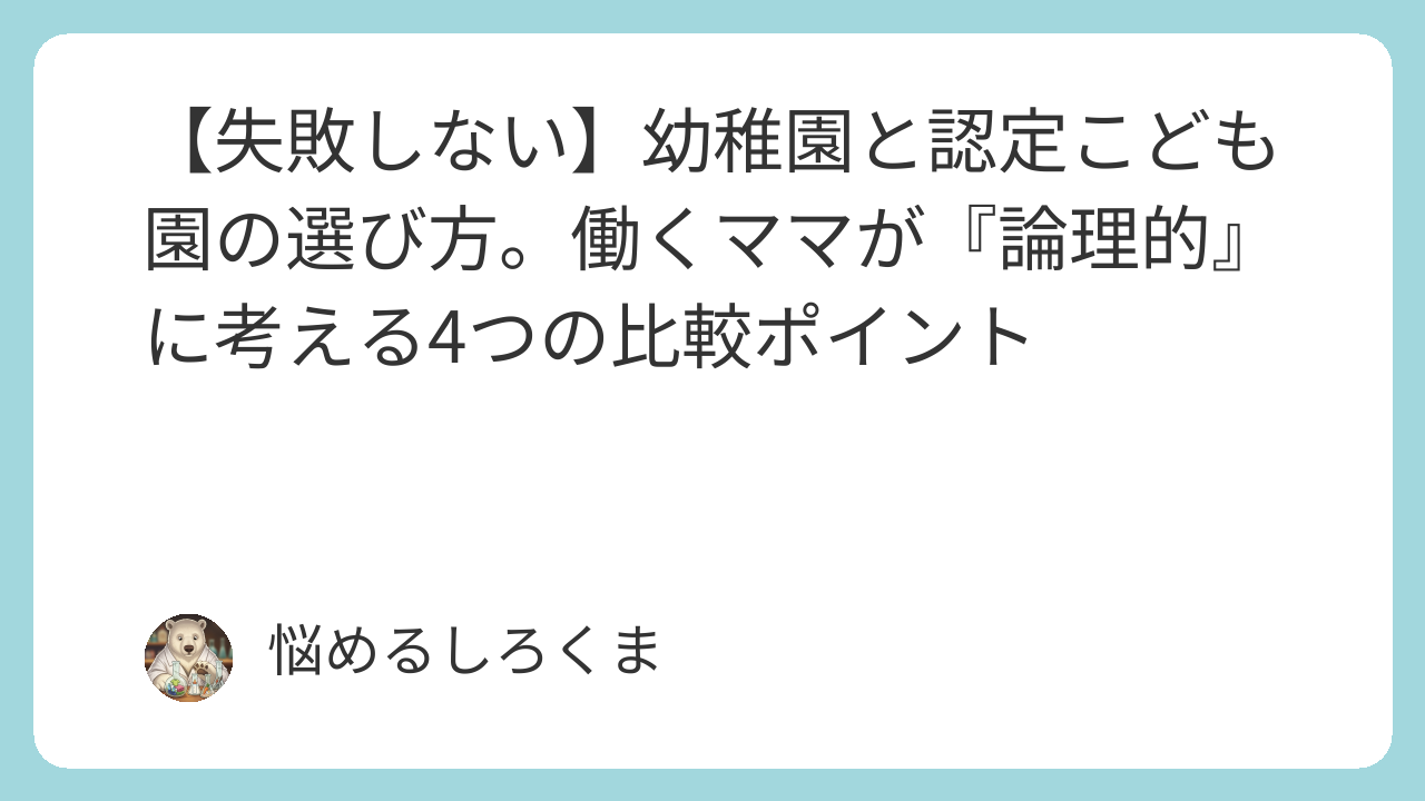 もしあなたが、同じように「幼稚園選び」に漠然とした不安を感じているなら、大丈夫です。この記事では、働くママが**『論理的』**に後悔しない園を選ぶための、4つの比較ポイントを私の実体験を交えてご紹介します。